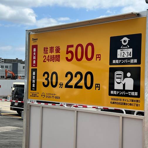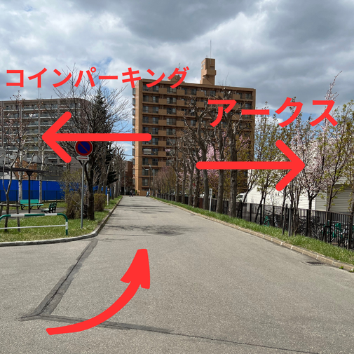 コインパーキング、アークスどちらも、同距離で徒歩3~4分の距離です。